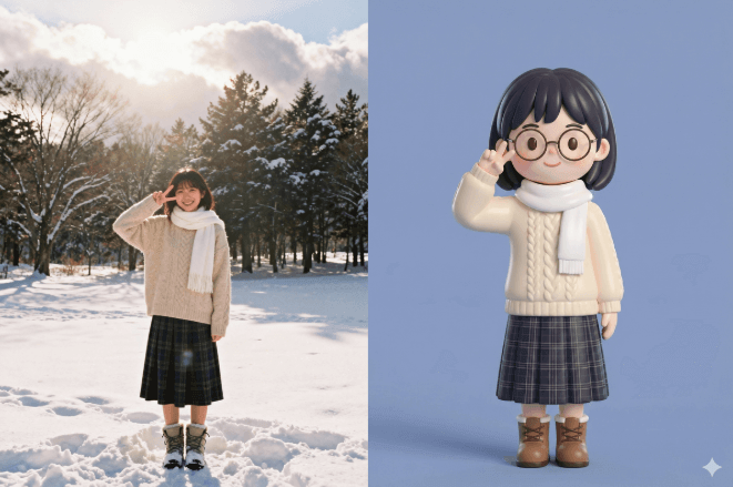 アバター・ポスター・SNS投稿向けのアニメ風キャラクターを簡単に作成。1回のアップロードで複数モデルを試しながら、思い通りの仕上がりを手軽に入手可能。